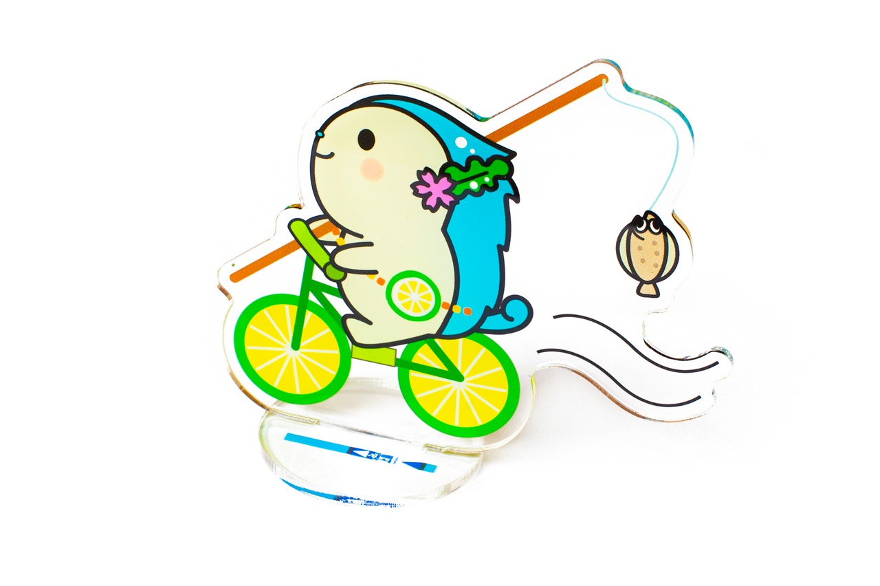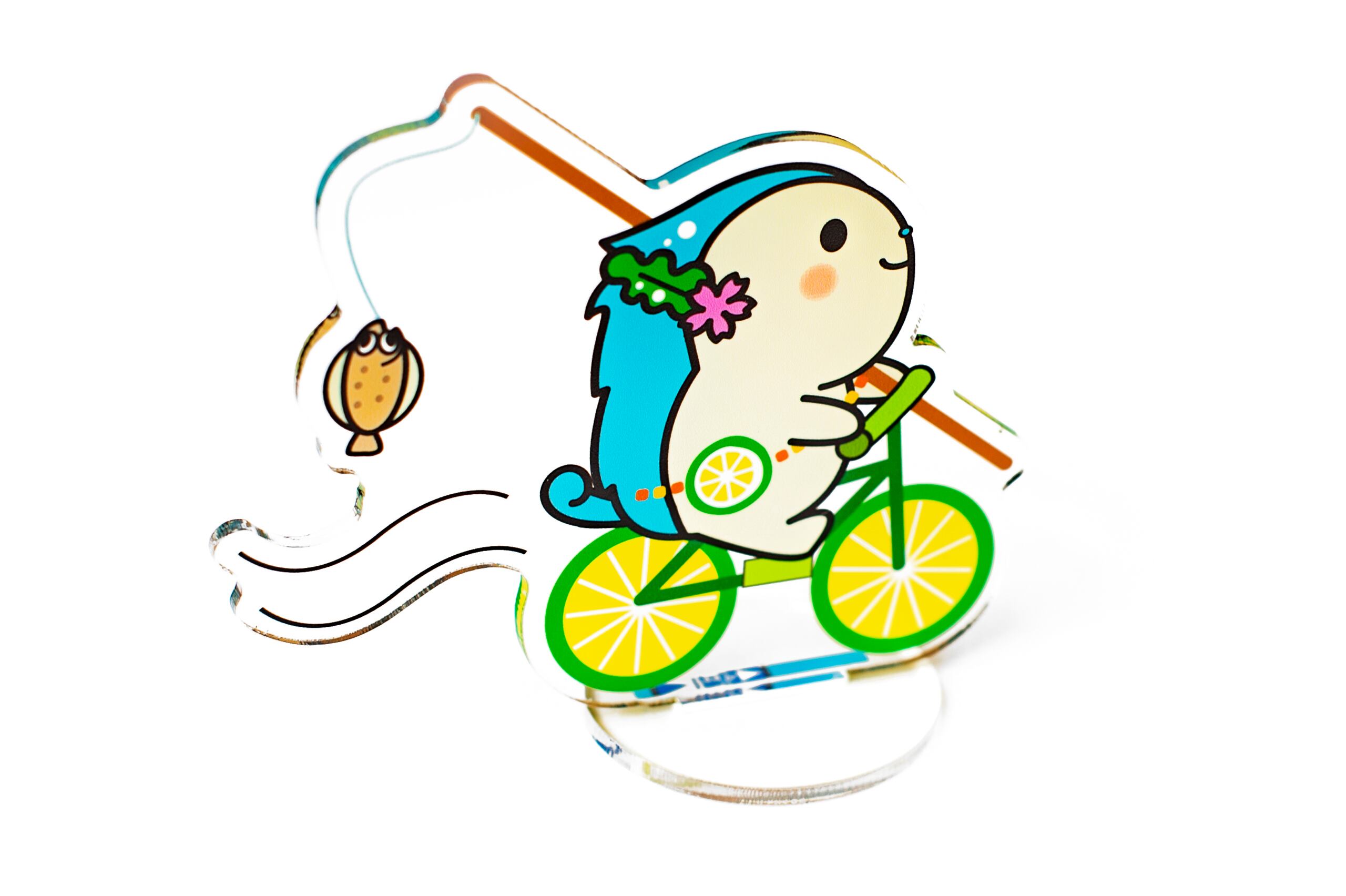 サイクリングバージョン。サイクリングを楽しむかみりんをイメージした可愛らしいデザインのアクリルスタンドです。