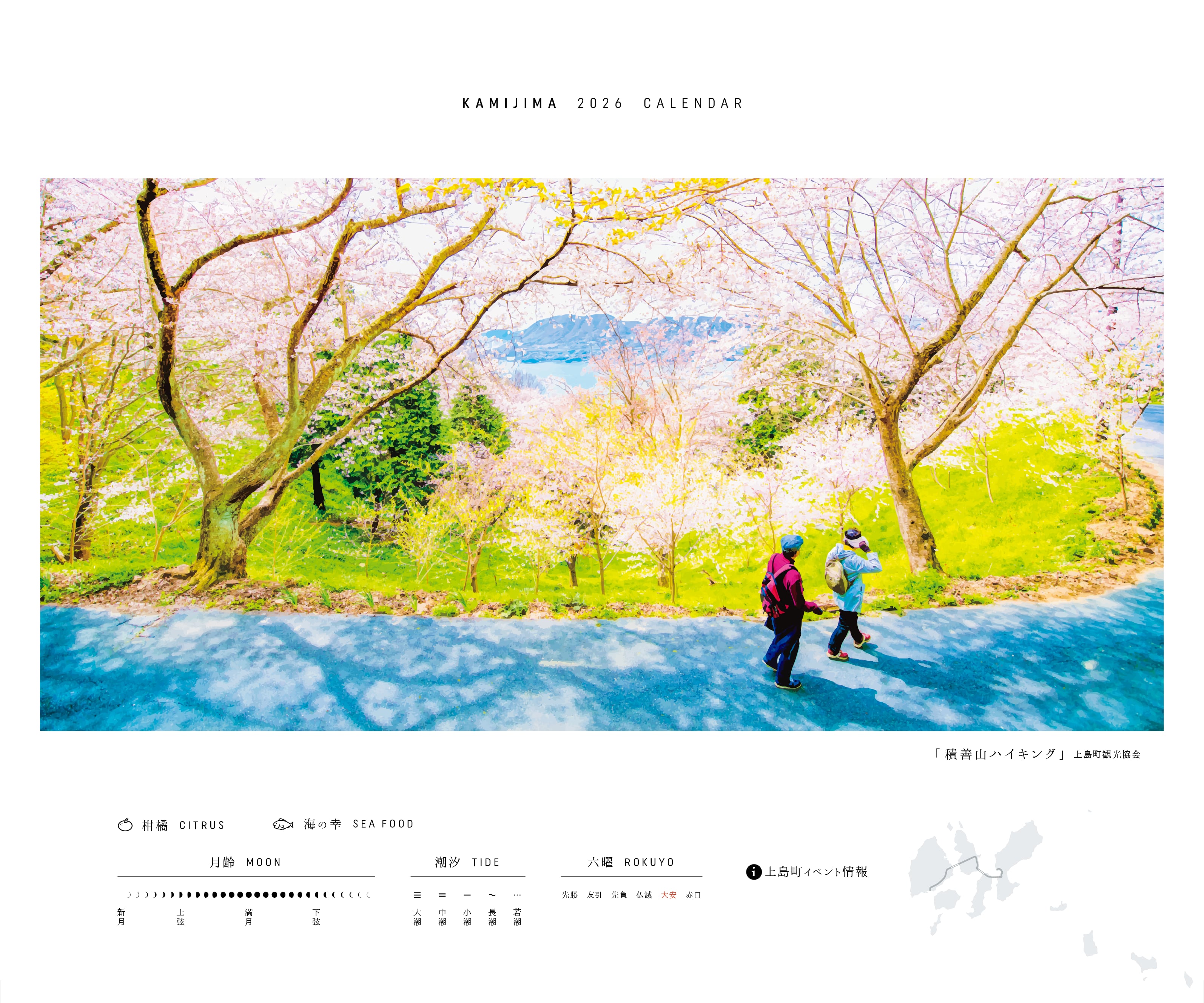 上島町を訪れた方、訪れたいと思っている方、また離れて暮らすご家族・ご友人などへのささやかな贈り物として、かみじまカレンダー2026をご活用ください。